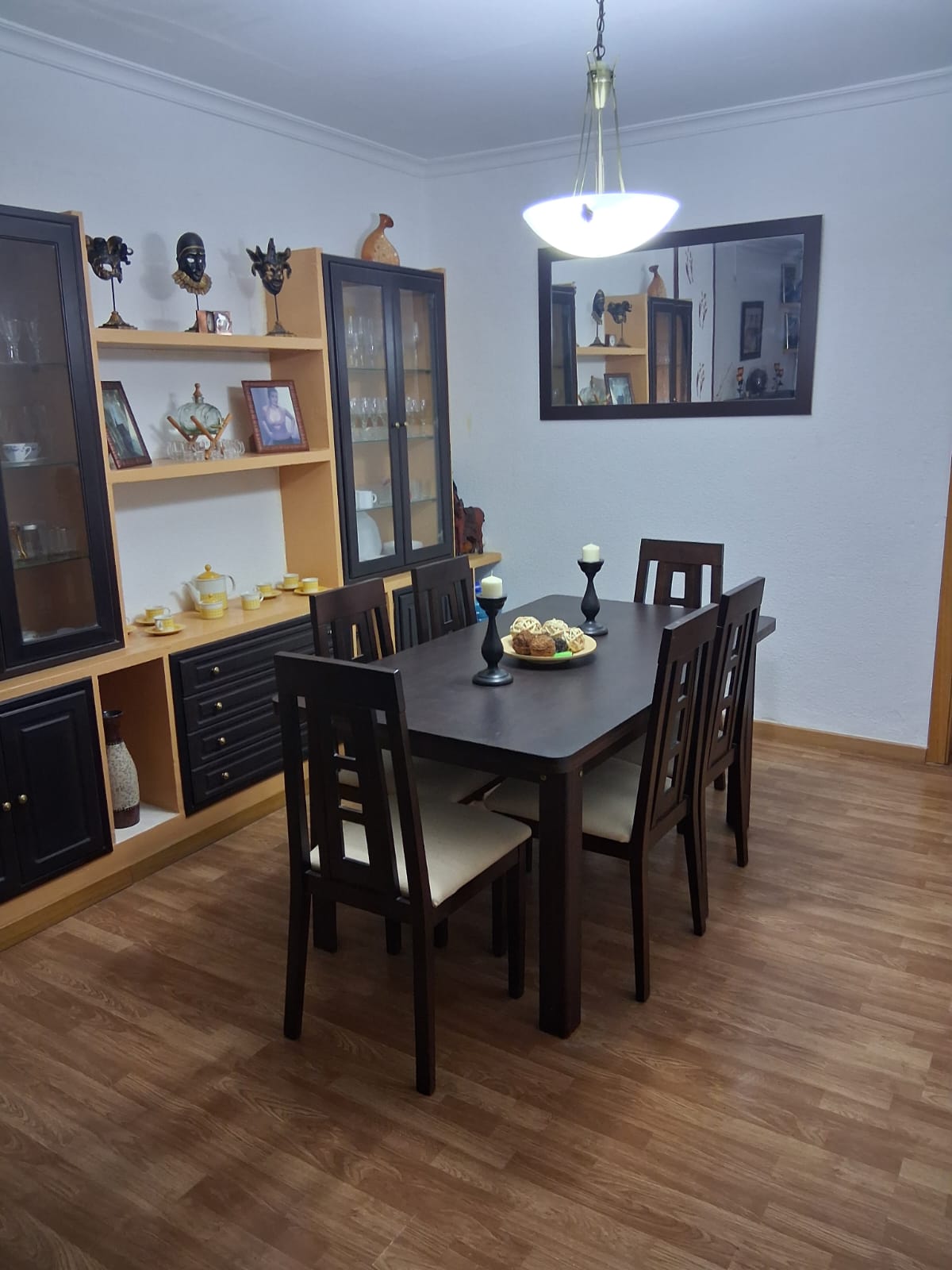 Vida Social y Descanso: Disfrute de un salón-comedor independiente y espacioso, un verdadero lujo que le permite diferenciar sus momentos de relax de sus cenas con invitados. La decoración en tonos de madera oscura genera un ambiente acogedor y con carácter.